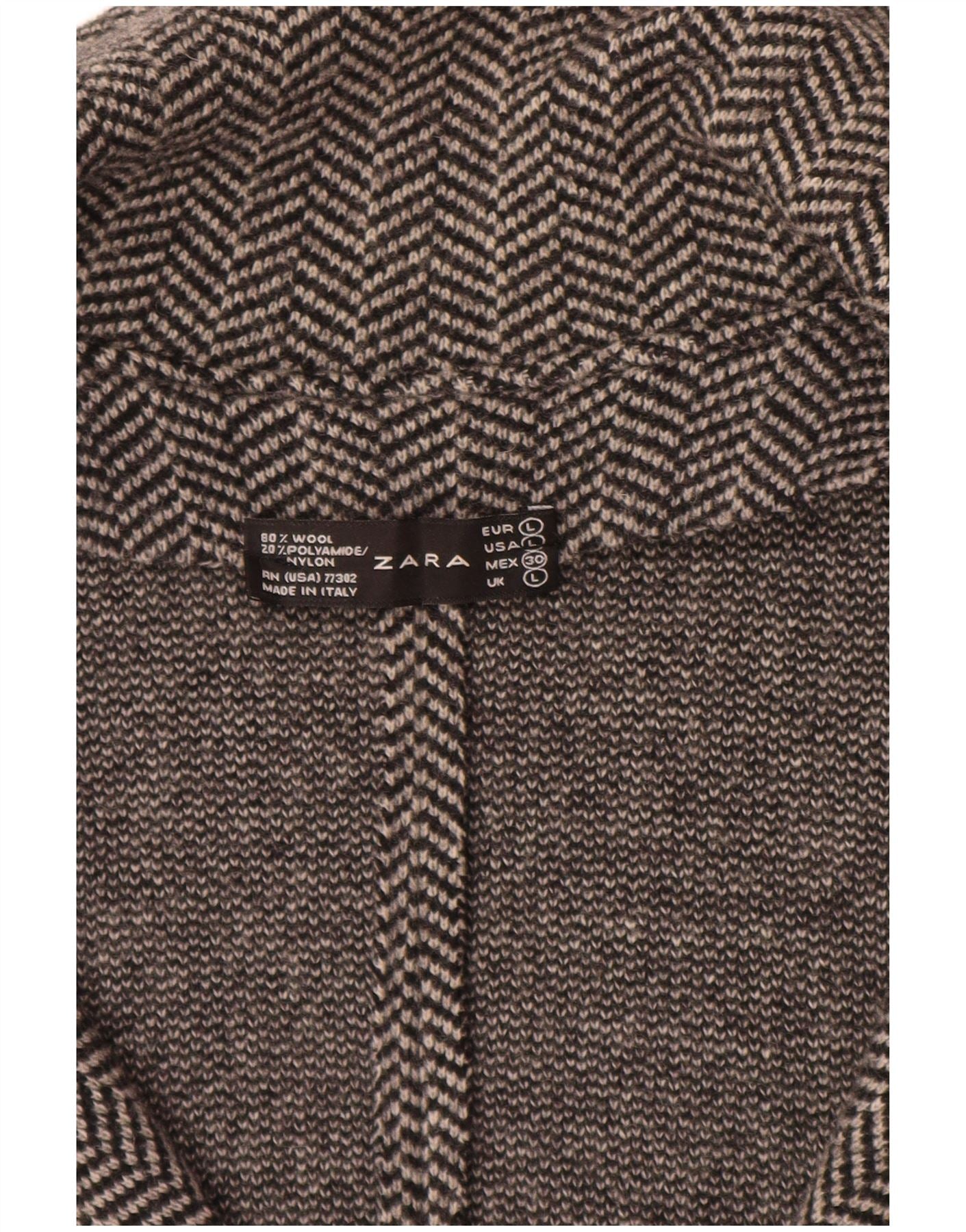 ZARA Γυναικείο πλεκτό μπουφάν blazer UK 14 Μεγάλο Γκρι Ψαροκόκκαλο