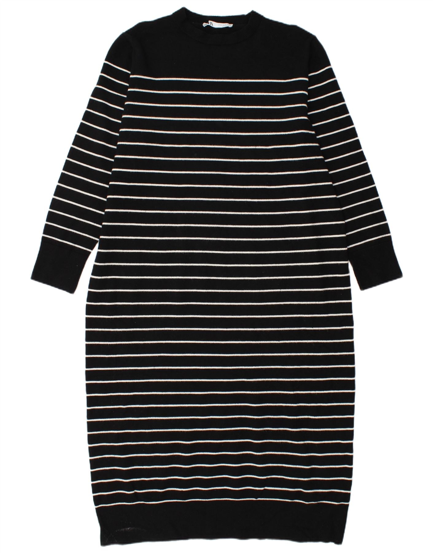 Γυναικείο μακρυμάνικο φόρεμα ZARA UK 18 XL μαύρη ριγέ βισκόζη
