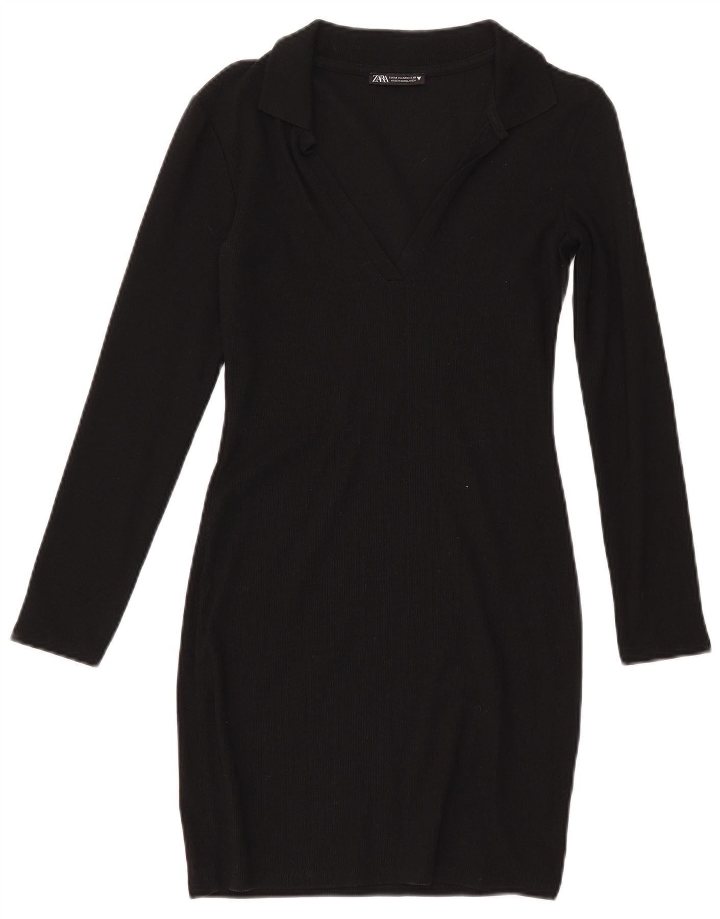 Γυναικείο μακρυμάνικο φόρεμα πόλο ZARA UK 12 μεσαίο μαύρο βαμβακερό