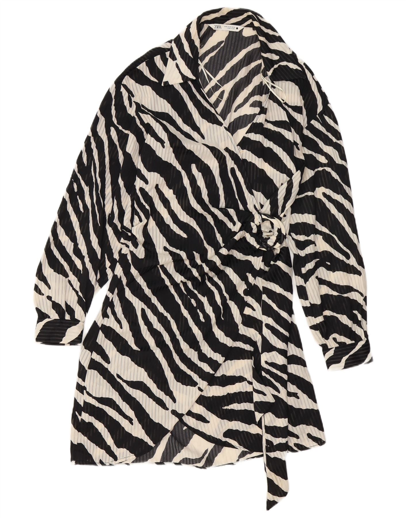 Γυναικείο μακρυμάνικο φόρεμα ZARA UK 12 μεσαίο μαύρο Animal print