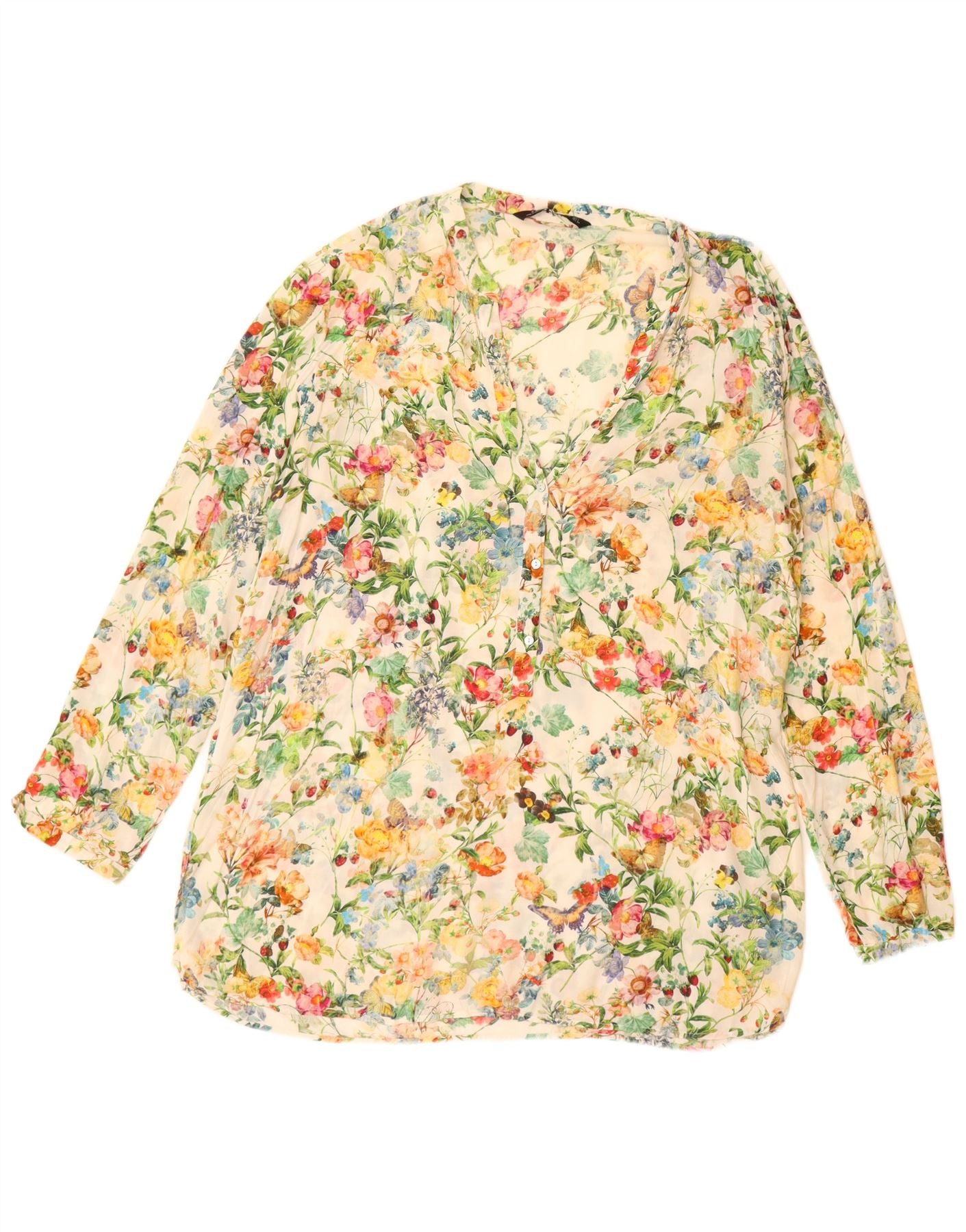 Γυναικεία μακρυμάνικη μπλούζα ZARA τοπ UK 16 Large Off White Floral