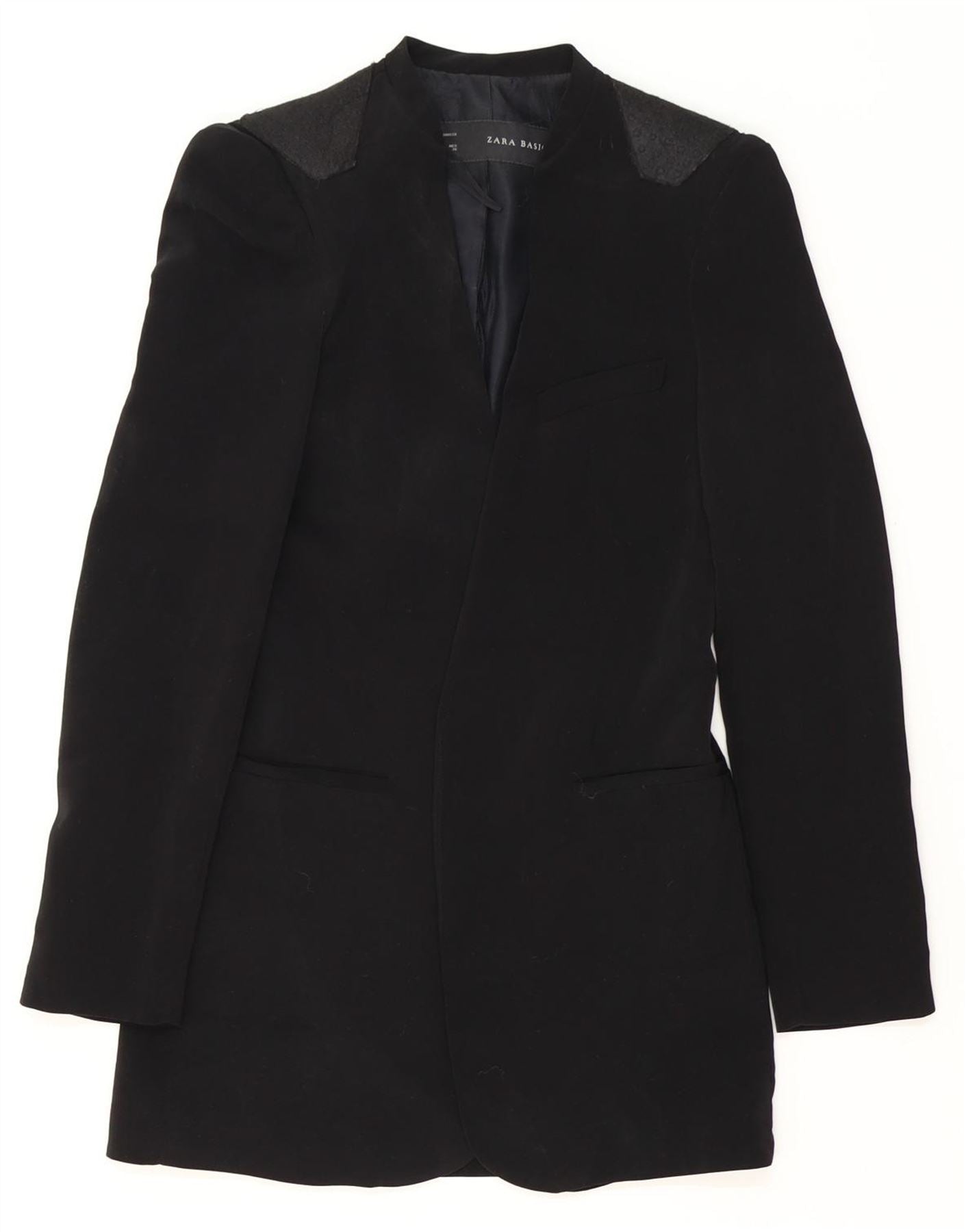 ZARA Γυναικείο Longline Open Blazer Jacket UK 10 Small Black Acetate