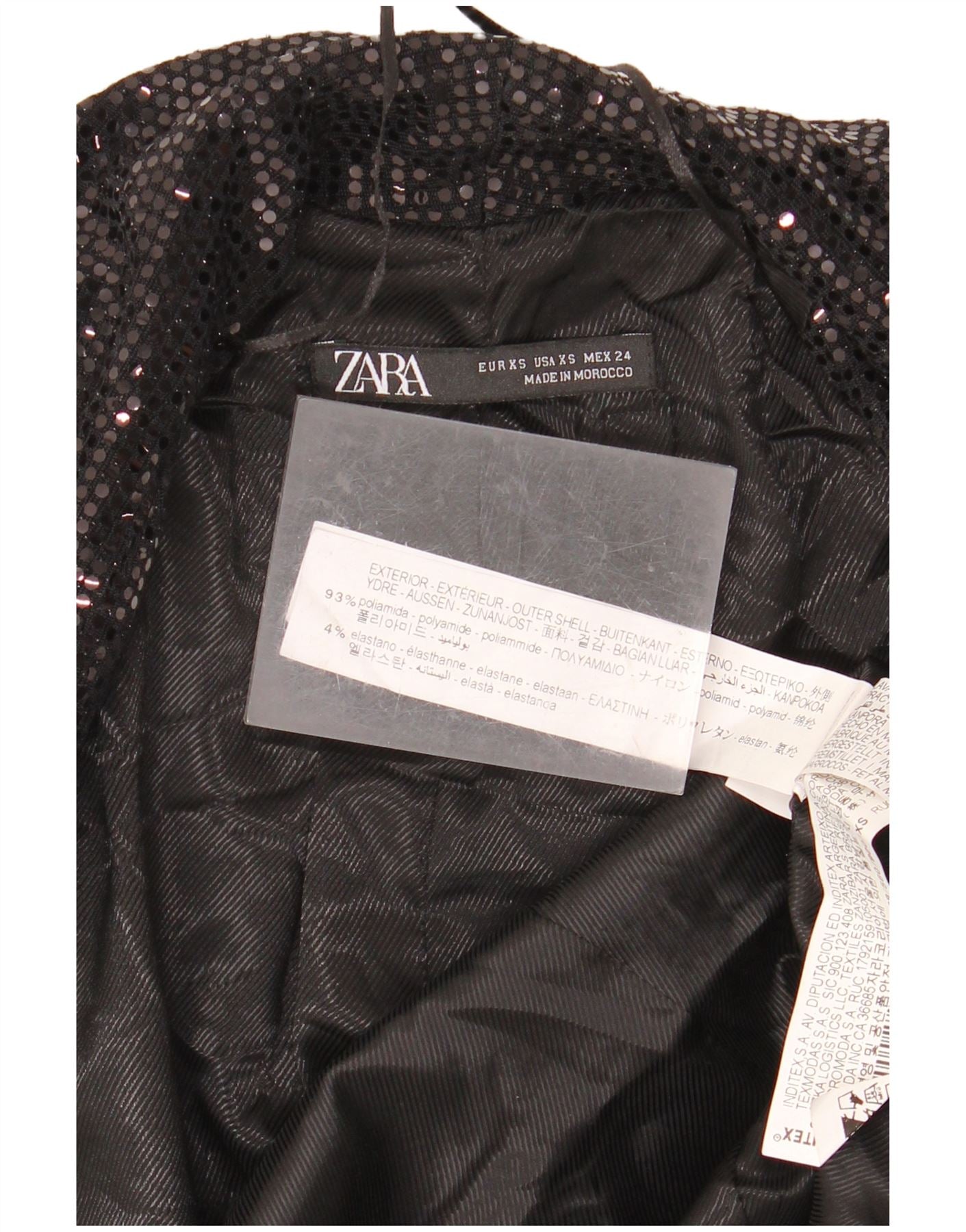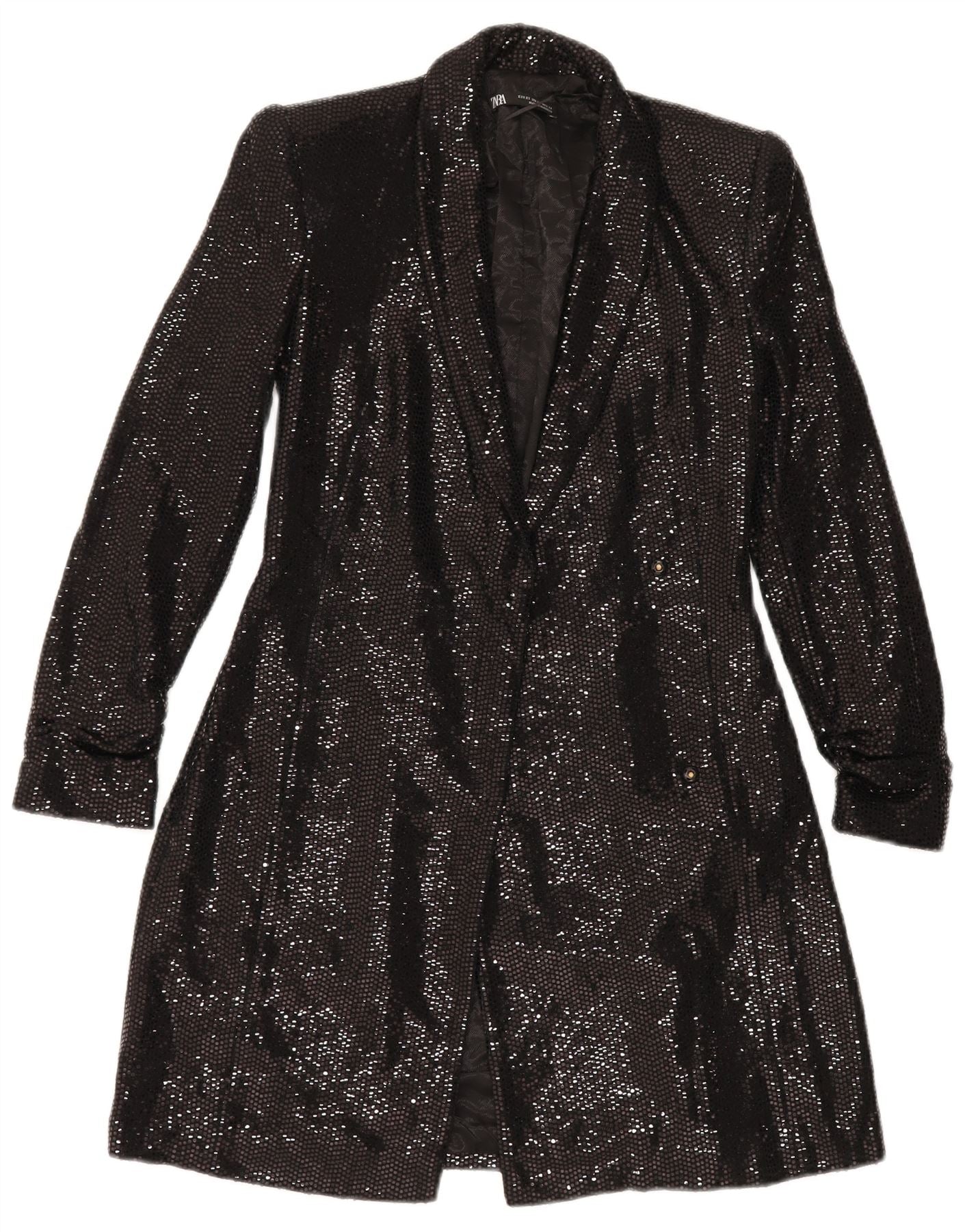 ZARA Γυναικείο Longline Open Blazer Jacket UK 6 XS Μαύρο Πολυαμίδιο