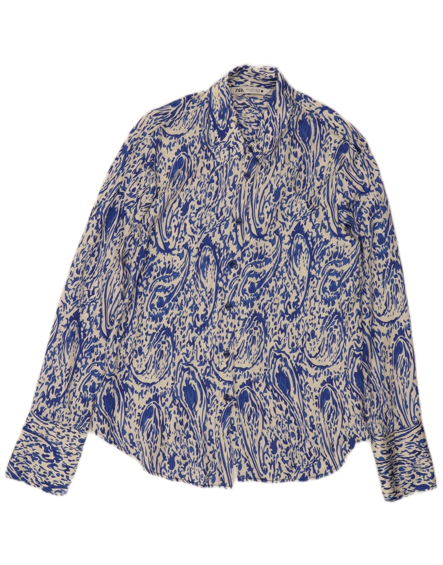 Zara Γυναικείο πουκάμισο Loose Fit UK 10 Small Blue Paisley