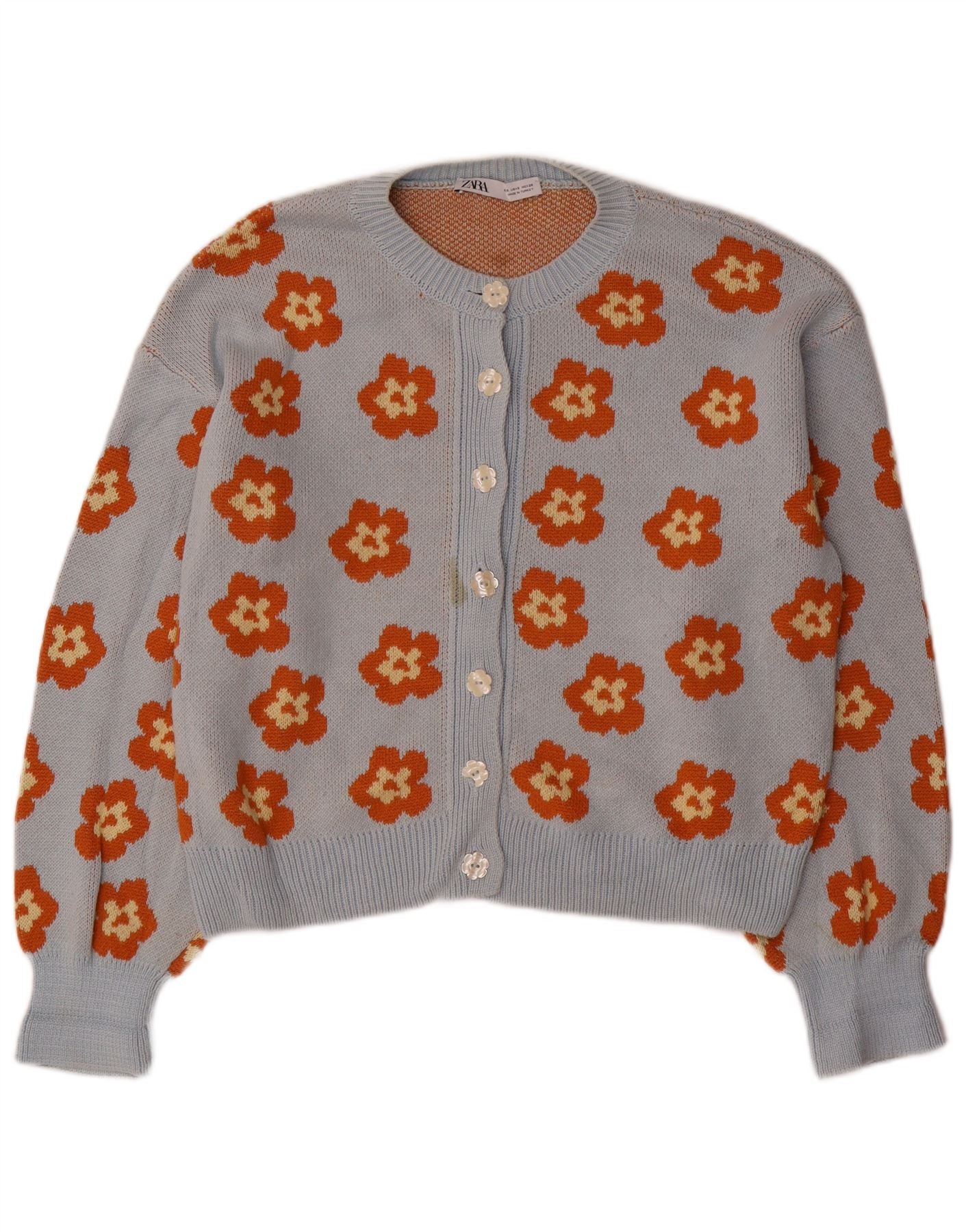 Zara Γυναικείο πουλόβερ με ζακέτα UK 10 Small Blue Floral