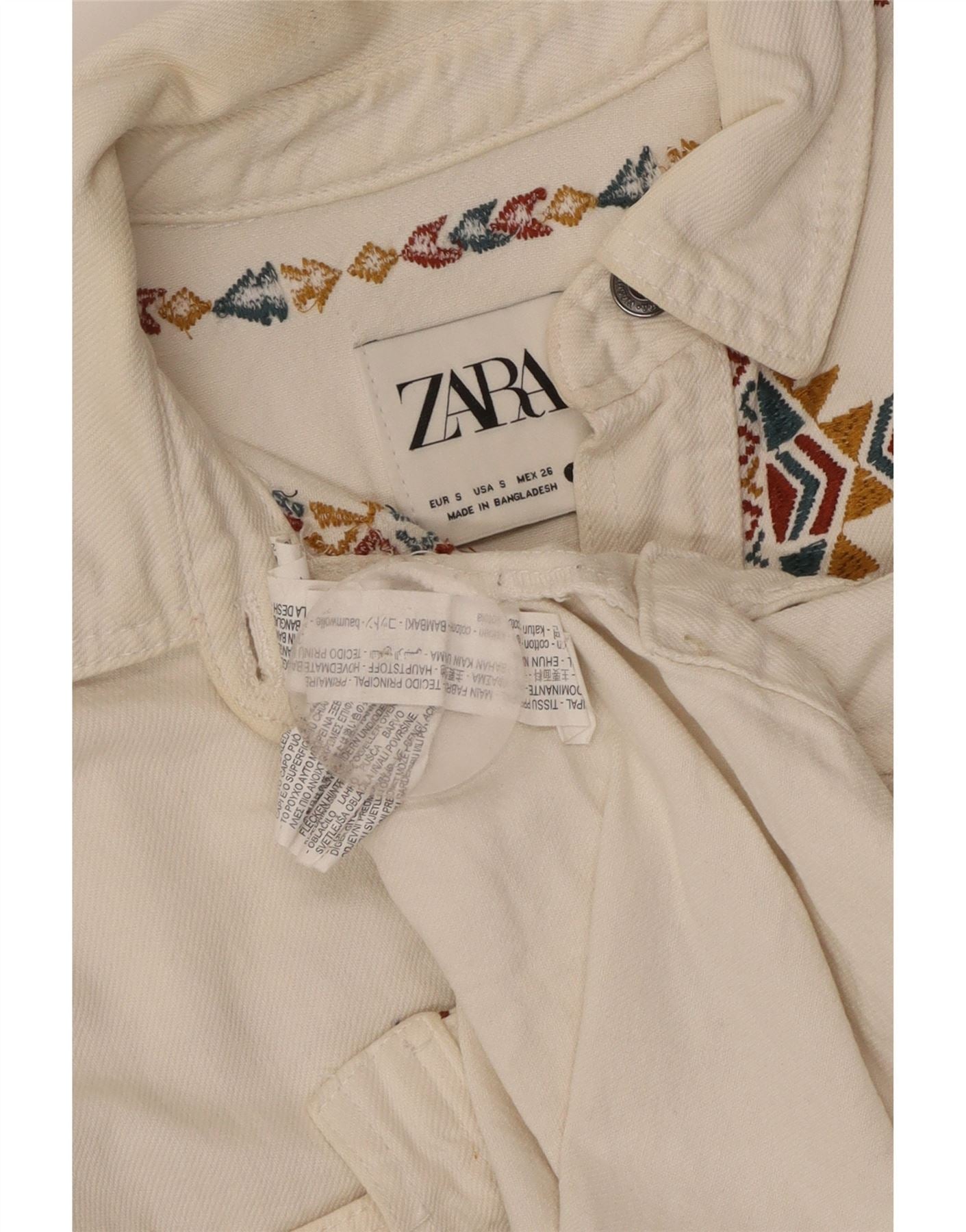 Zara Γυναικείο πουκάμισο Oversized UK 10 Small White Geometric Cotton