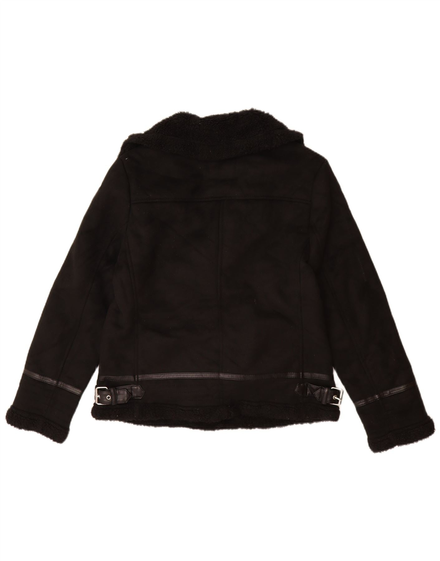 ZARA Γυναικείο Sherpa Biker Jacket UK 12 Medium Black Polyester