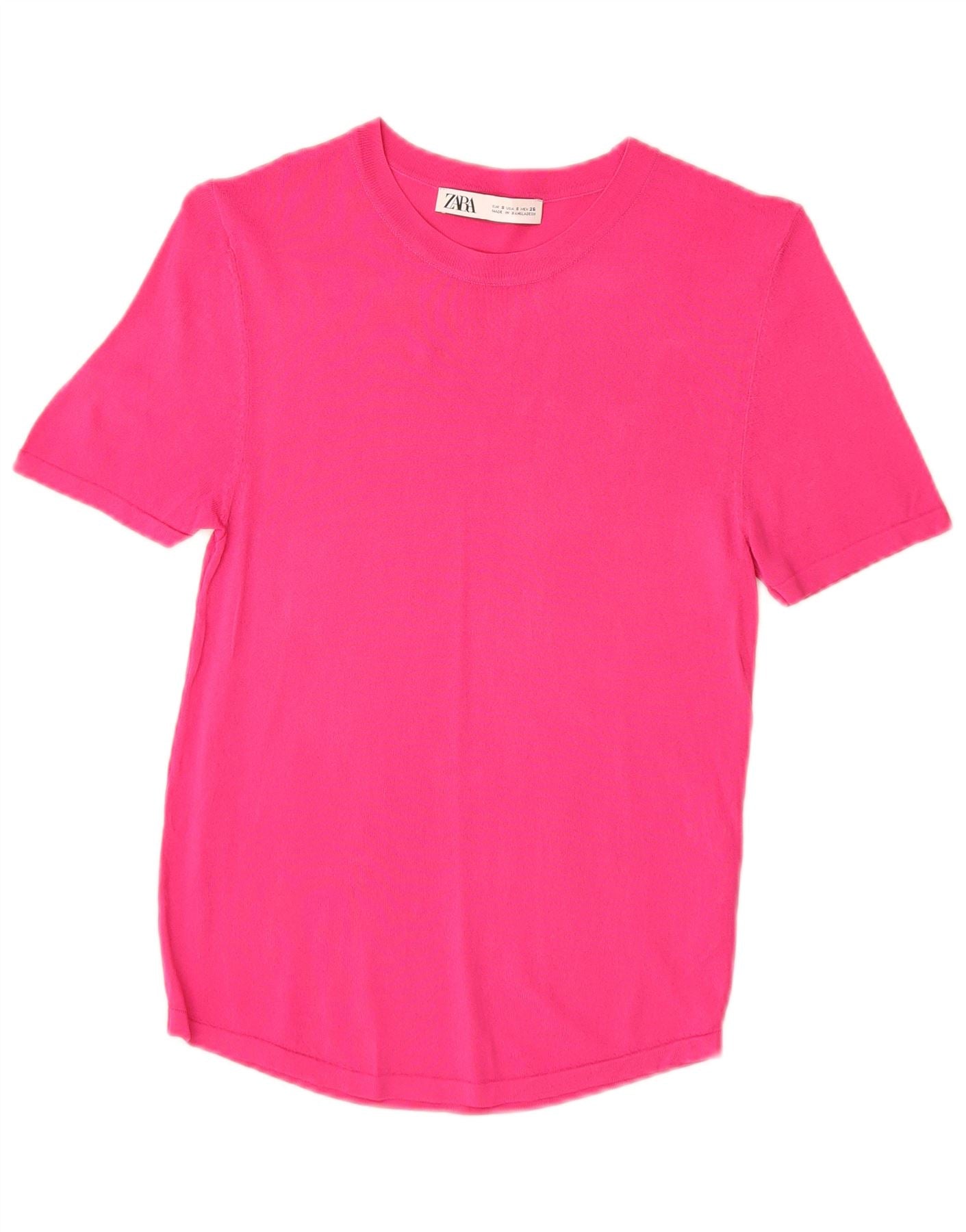ZARA γυναικείο κοντομάνικο πουλόβερ με λαιμόκαυστο UK 8 Small Pink Viscose
