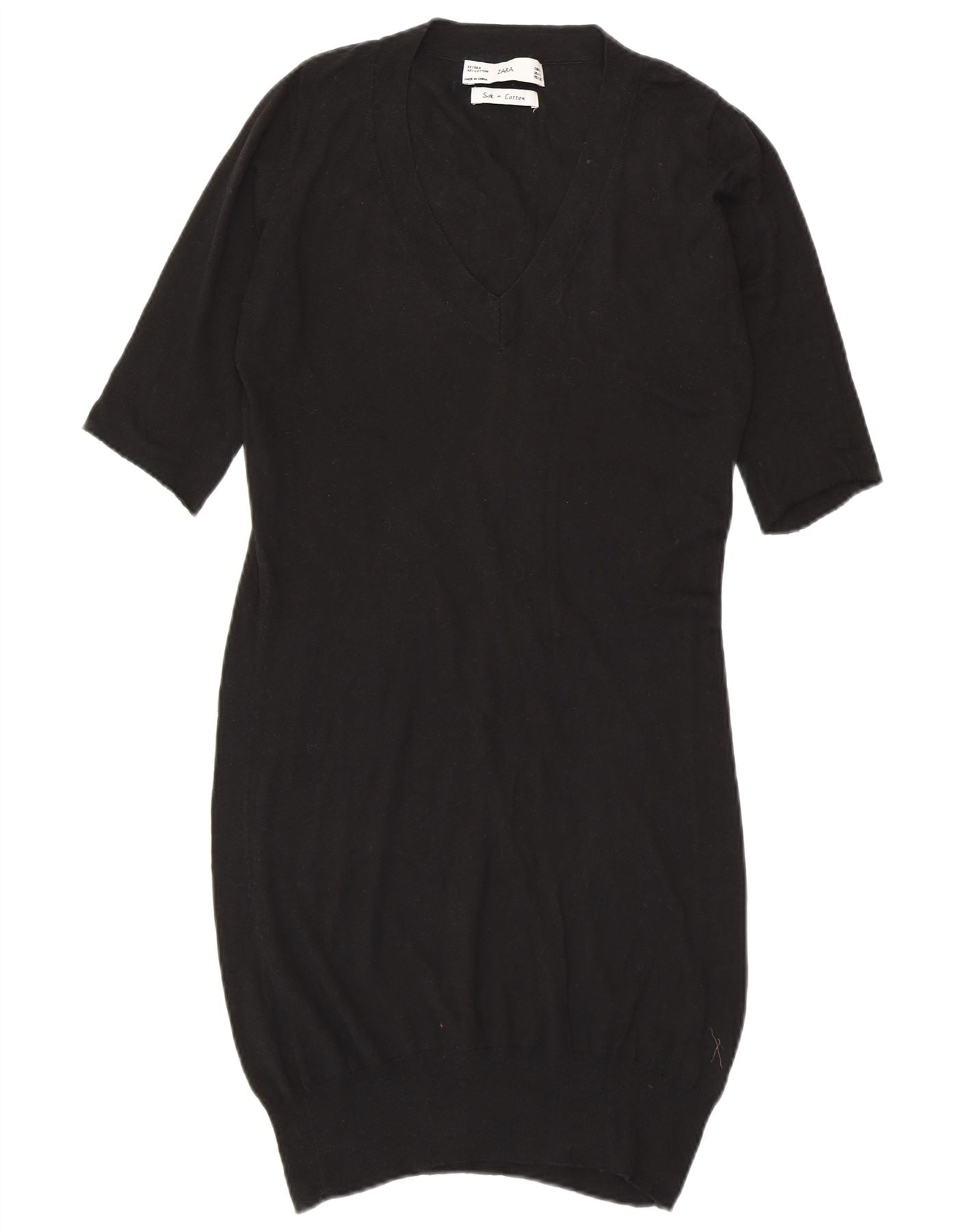 Γυναικείο κοντομάνικο φόρεμα ZARA UK 10 Small Black Silk