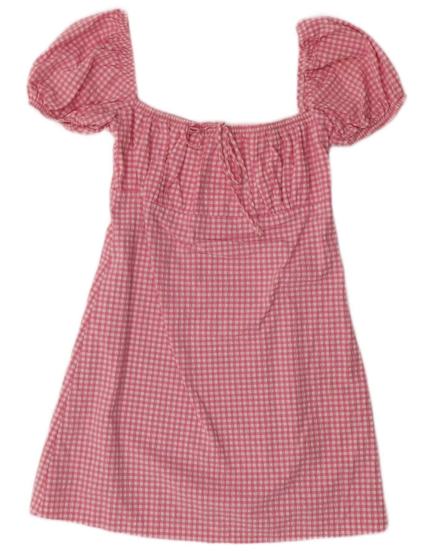 Zara Γυναικεία κοντομάνικα Sundress UK 12 Medium Pink Gingham Bohemian