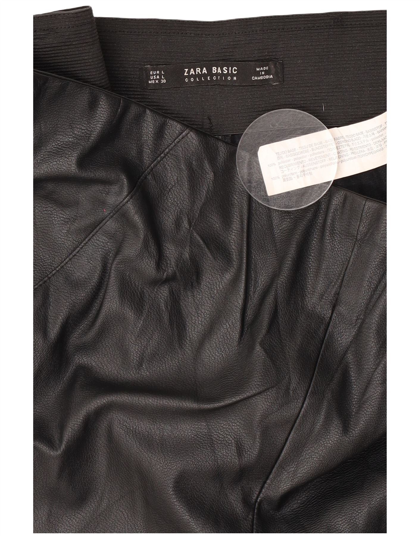 Γυναικείο παντελόνι Zara Slim Faux Leather Large W34 L27 Μαύρο Πολυουρεθάνη