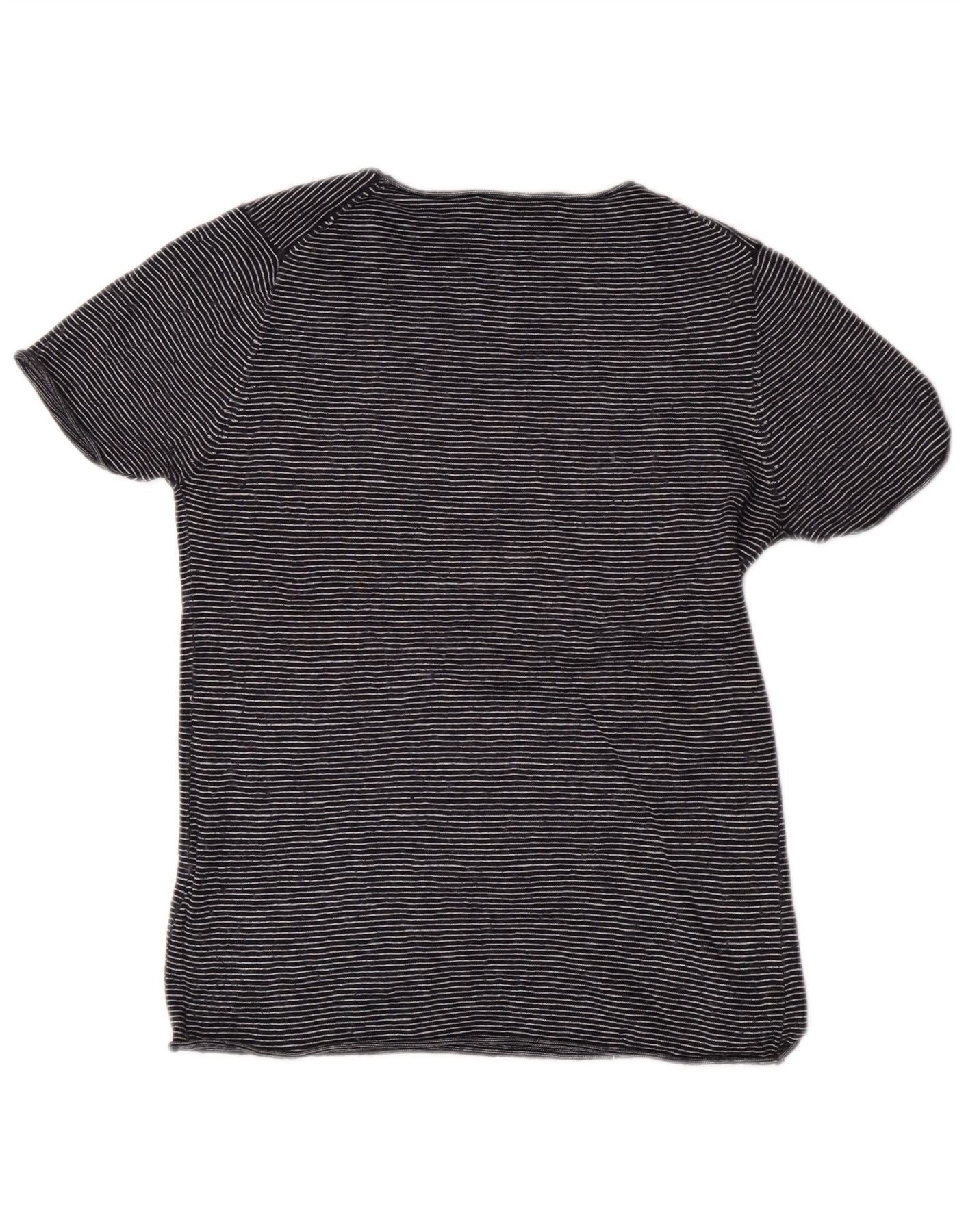 Zara Γυναικείο T-Shirt Top UK 12 Medium Navy Blue ριγέ Modal