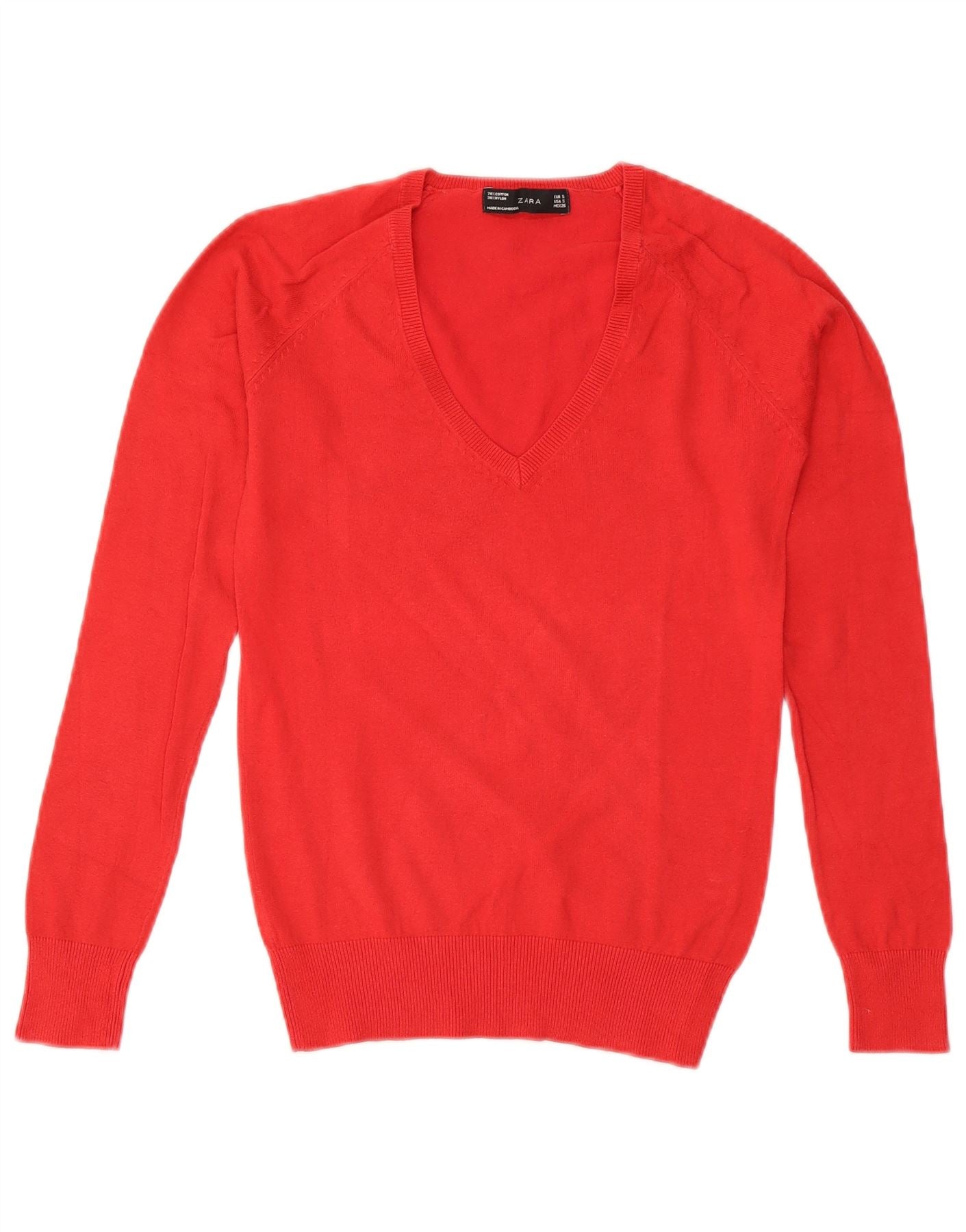 Γυναικείο πουλόβερ ZARA με V λαιμόκοψη UK 10 Small κόκκινο βαμβακερό