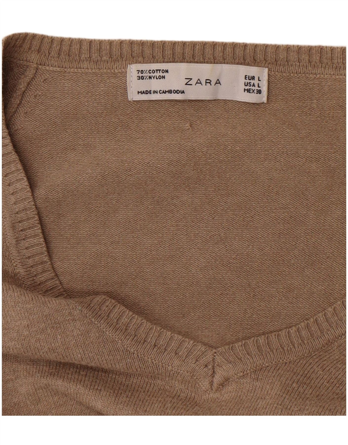 Zara Γυναικείο πουλόβερ με V λαιμόκοψη UK 14 μεγάλο καφέ βαμβακερό